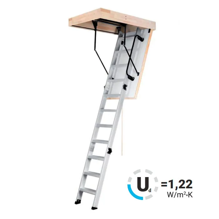 Модель EXTRA идеальна для условий, когда чердак плохо утеплен и требует дополнительной теплоизоляции. По контуру короба одинарный уплотнитель. Лестница имеет нескользящие ножки, которые идеально прилегают к земле, предотвращают появление царапин на поверхности пола и придают эстетичный вид после ее резки.
