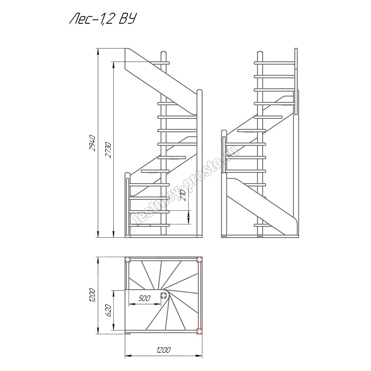 Деревянная межэтажная лестница ЛЕС-1,2ВУ, Бук