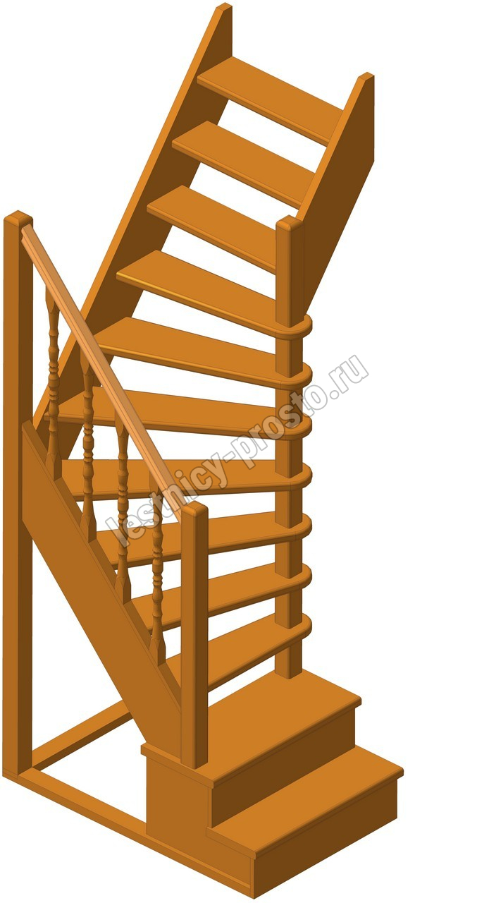 Деревянная межэтажная лестница ЛЕС-91 2700-2925 проем 1220-780, Сосна