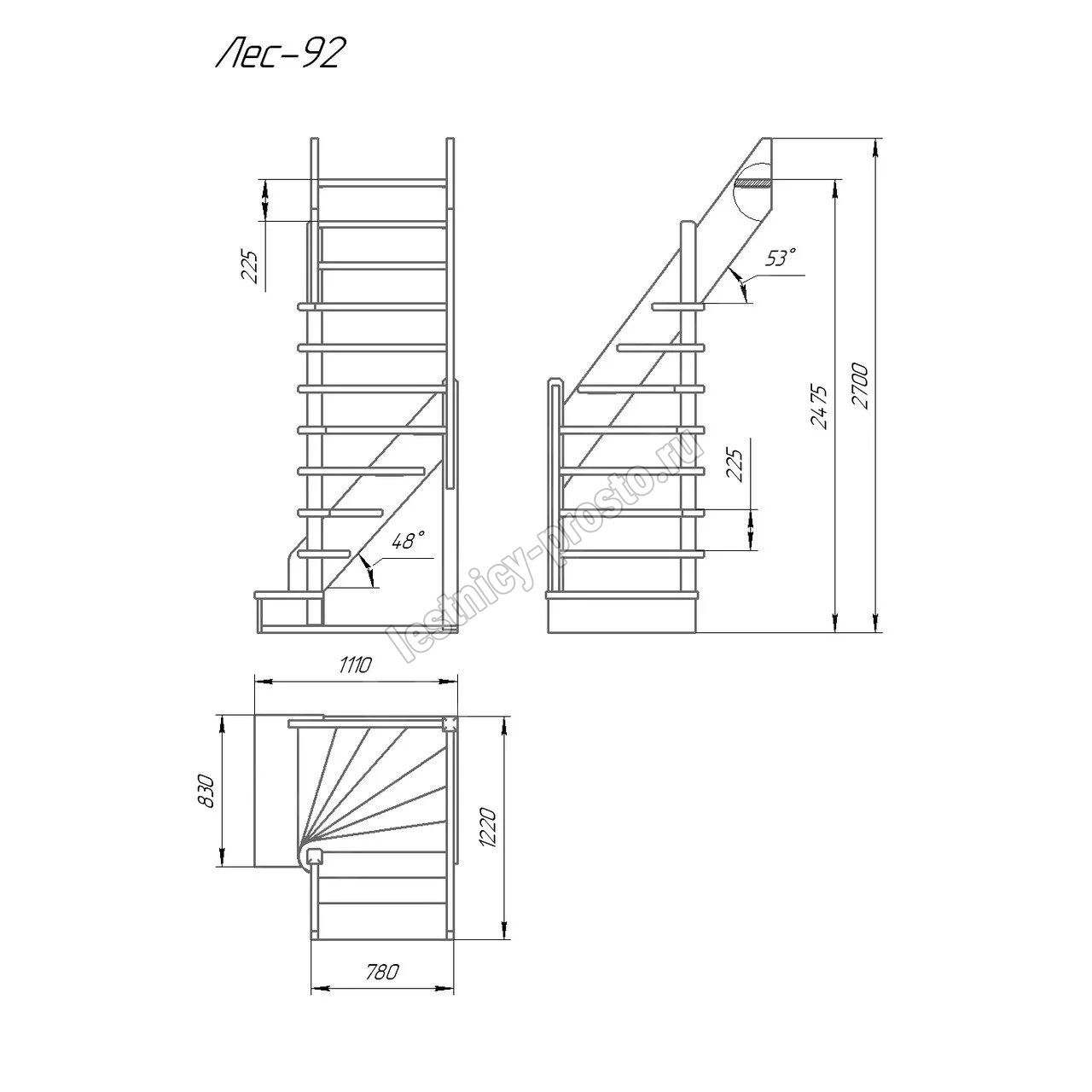 Деревянная межэтажная лестница ЛЕС-92 у, Бук