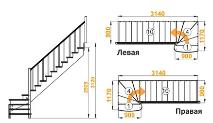 Высота лестницы 2925 - 3120