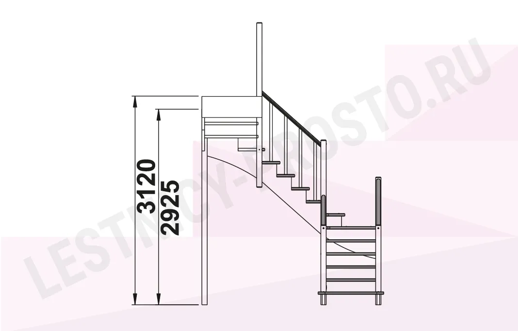 Ступени и поручень лестницы выполнены из бука, остальные элементы из сосны.
