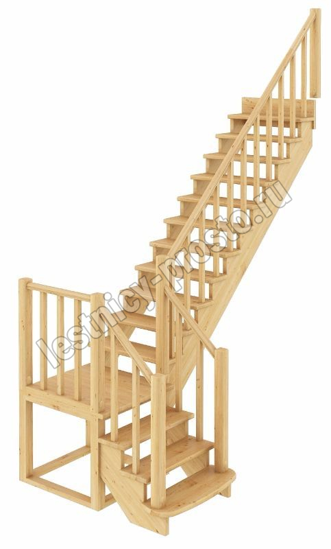 Базовый комплект включает в себя деревянные элементы лестницы и ограждения без какого-либо покрытия.