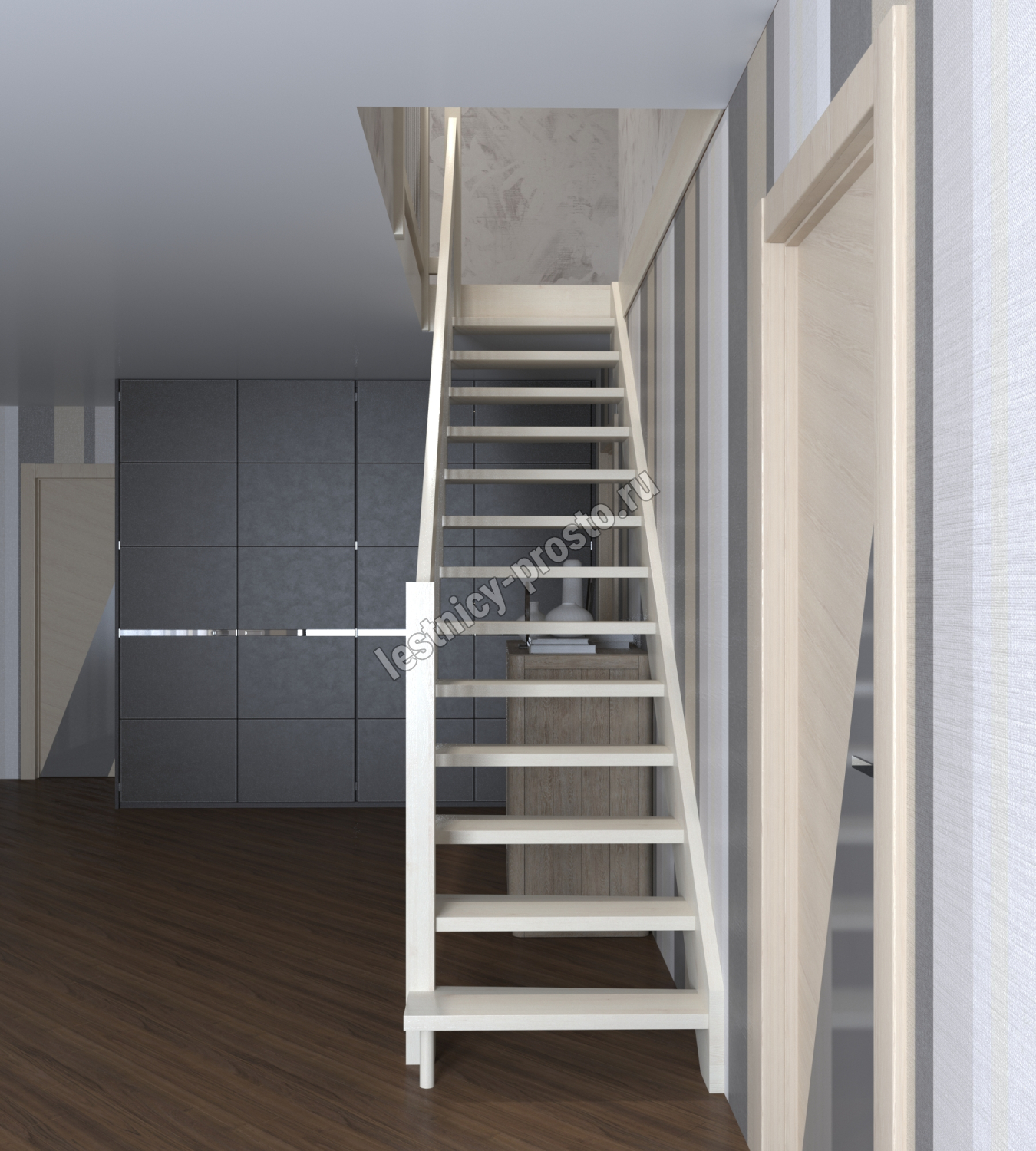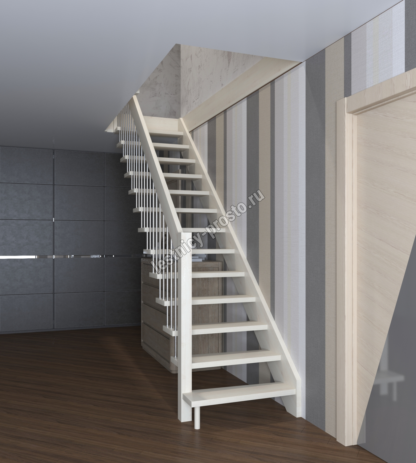 Надёжная современная лестница выполнена по немецкой технологии. Стоимость указана для лестницы с ограждением (с одной стороны); Поставляется в разобранном виде, в комплекте необходимый крепёж; Лестницу можно собрать самостоятельно; Так же, вы можете заказать услугу монтажа нашими специалистами; 4 вида породы дерева для изготовления лестницы: сосна, бук, ясень, дуб; возможна комбинированная лестница: из сосны (ступени бук, ясень, дуб); Деревянные элементы без какого-либо покрытия, отшлифованы, готовы к покраске. За дополнительную плату, вы можете изменить любые параметры, а именно: увеличить глубину ступени; увеличить ширину марша до 900 мм. и выше; заказать подступенки к лестнице; заказать отделку перекрытия (между 1-м и 2-м этажами); изготовить дополнительный промежуточный марш; заказать ограждение 2-го этажа; покраска в любой цвет или несколько цветов или покрытие защитными средствами; дополнение балясины из нержавеющей стали деревянными элементами; покраска балясин из нержавеющей стали порошковой краской в цвет RAL.