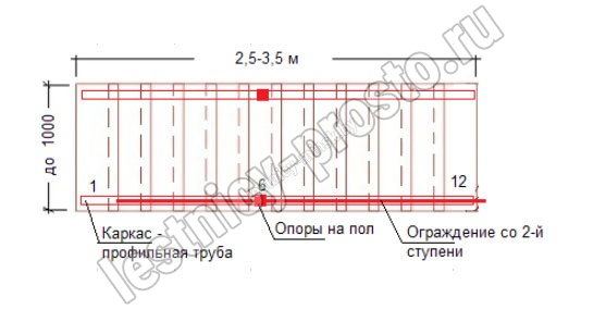 Ограждение начинается со второй ступени.<br>