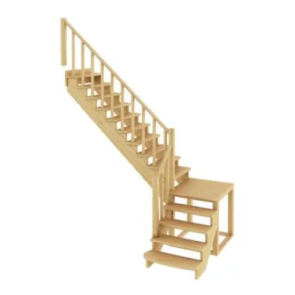 В комплекте: 3 прямых столба и профильный поручень без покрытия, набор из 3 ригелей из стали (окрашены в цвет каркаса или хром по желанию) диаметром 12 мм. Ограждение начинается со второй ступени.