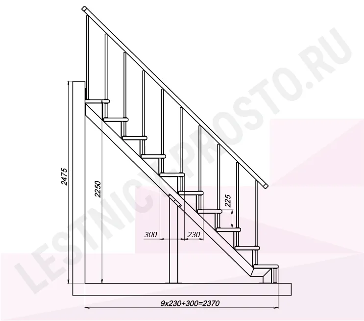 Высота лестницы 2250 - 2475 мм