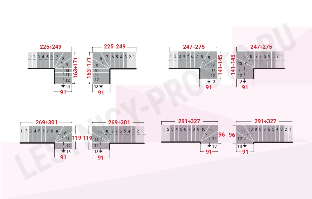 Вариант сборки лестницы Kompact 89 c с поворотом
