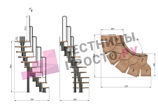 Лестница Prosto Urban Black гусиный шаг 600 мм, h198-288 см (11 ступеней), бук |