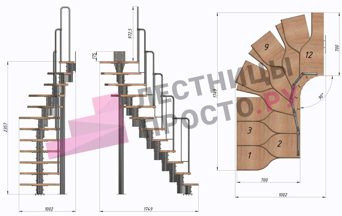 Высота лестницы 2160 - 3120 (12 ступеней) мм