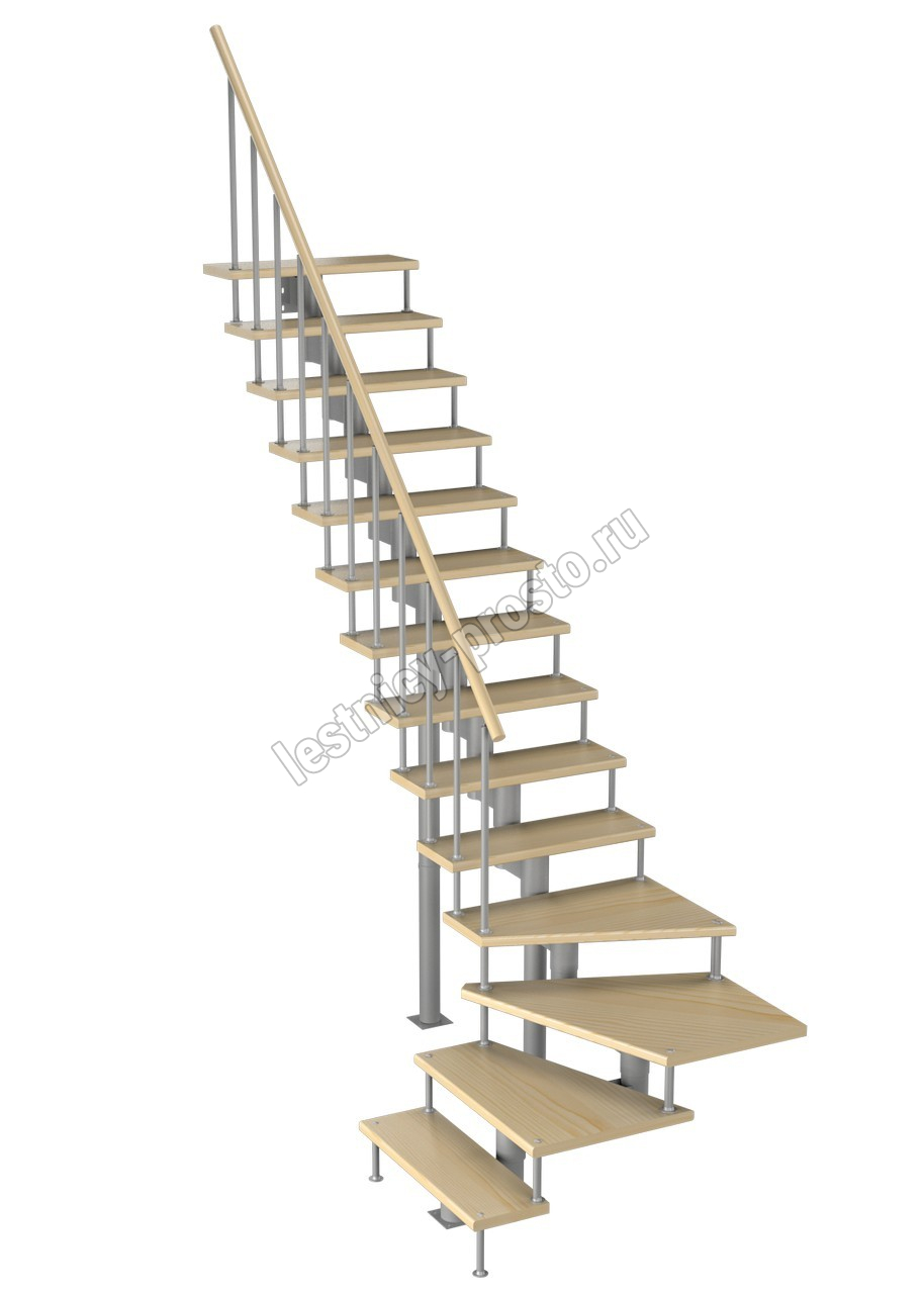 Модульная лестница Фаворит 180 2520-2660, Серый, Сосна, Крашеная