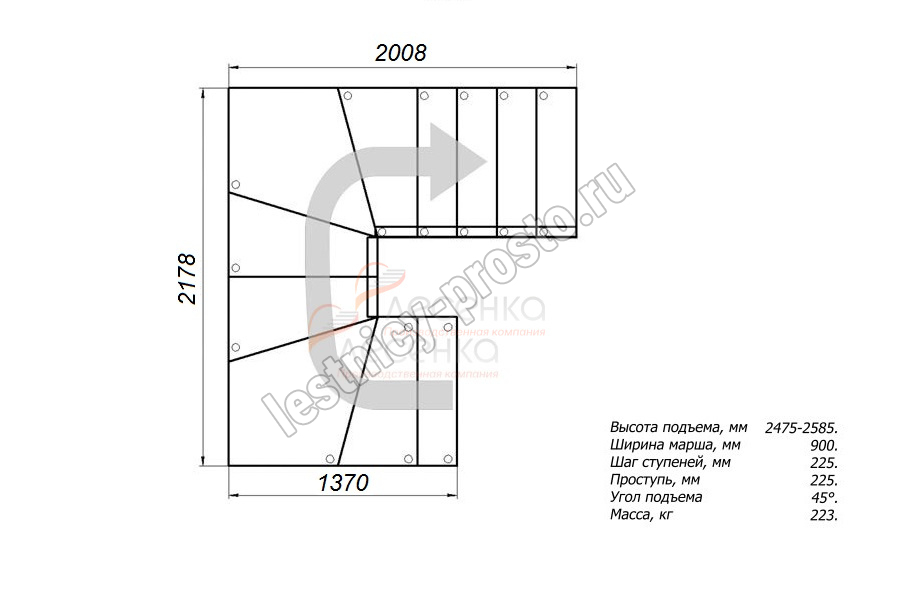 Модульная лестница Спринт 225 2475-2585, Серый, Лиственница, Нержавеющая сталь