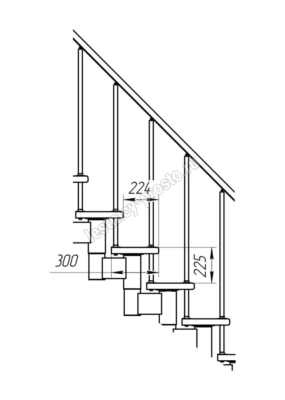Модульная лестница Статус 225 2475-2585, Белый, Сосна, Нержавеющая сталь
