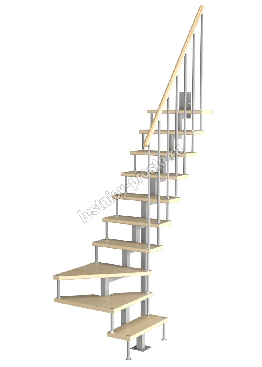 Модульная малогабаритная лестница Компакт 2250-2475, Серый, Лиственница, Нержавеющая сталь