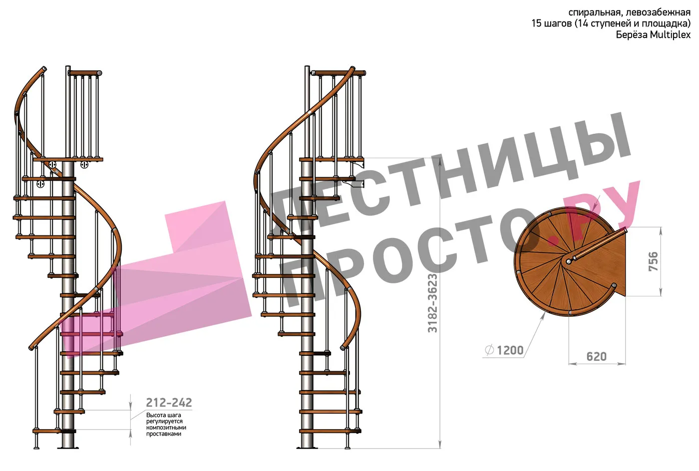 Высота лестницы 3182 - 3623 (14 ступеней) мм
