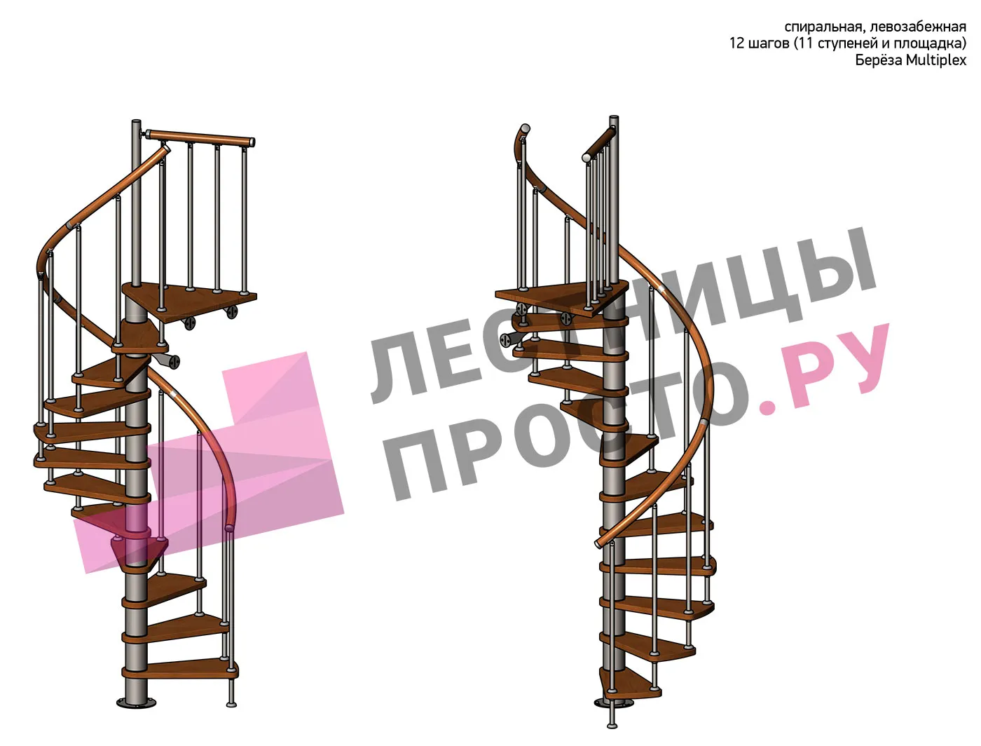 Винтовая лестница Prosto Spiral White D120см, h254.5-289.8 см