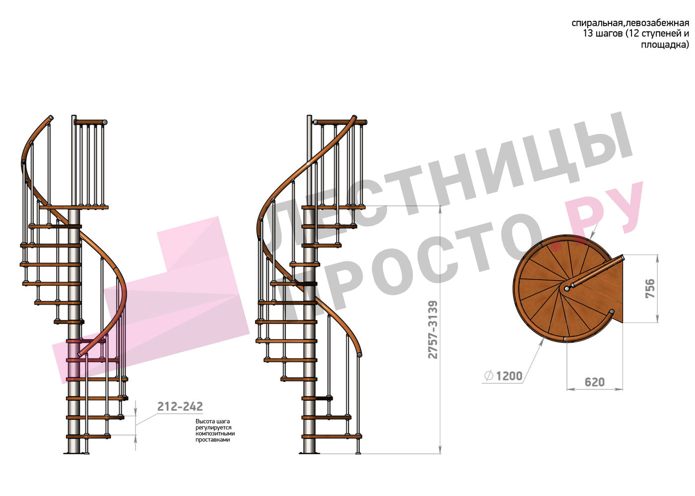 Высота лестницы 2757 - 3139 (12 ступеней) мм