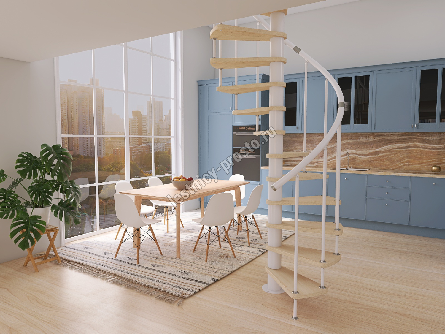 Винтовая лестница Prosto Spiral White D120см, h275.7-313,9 см