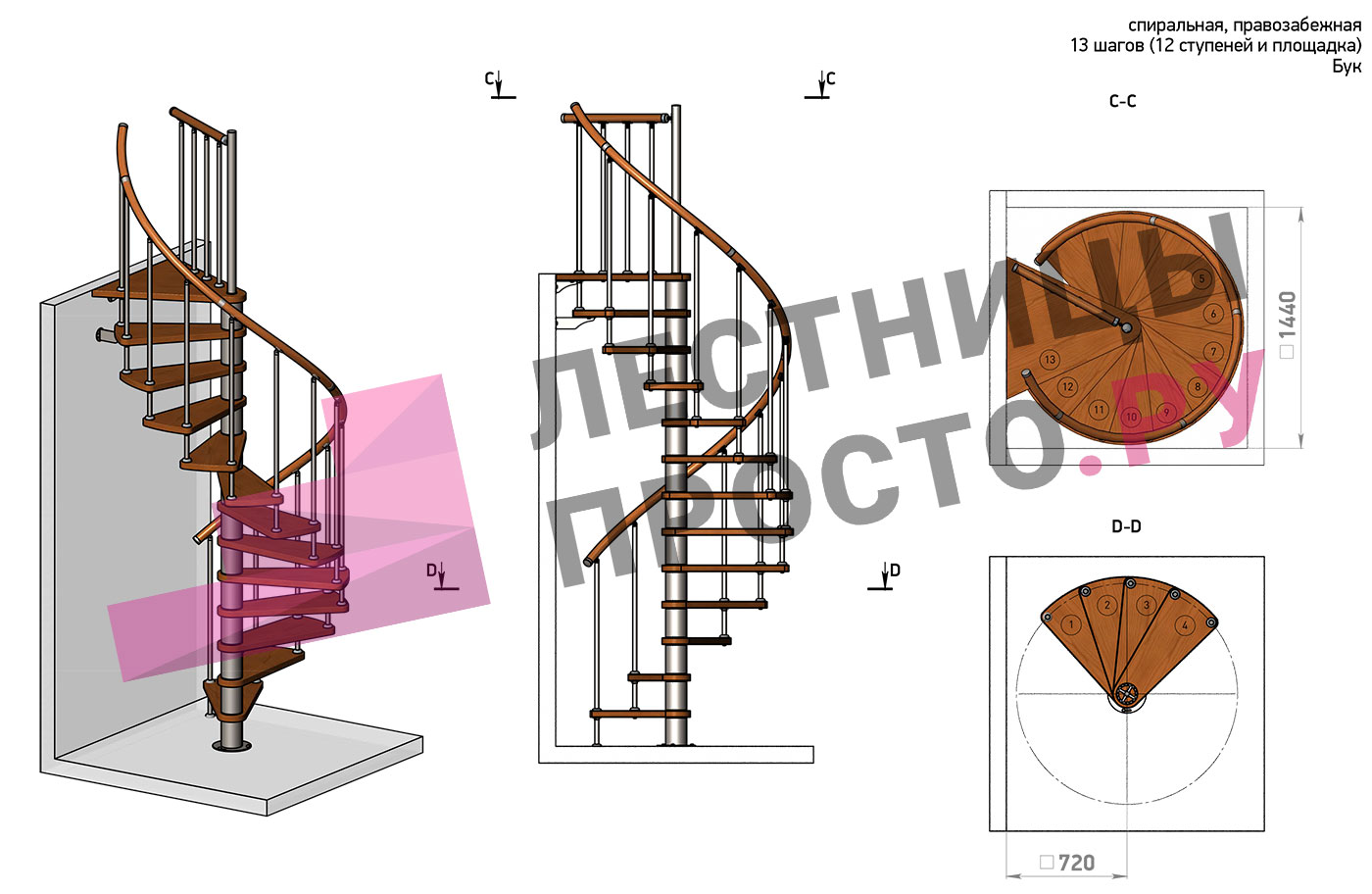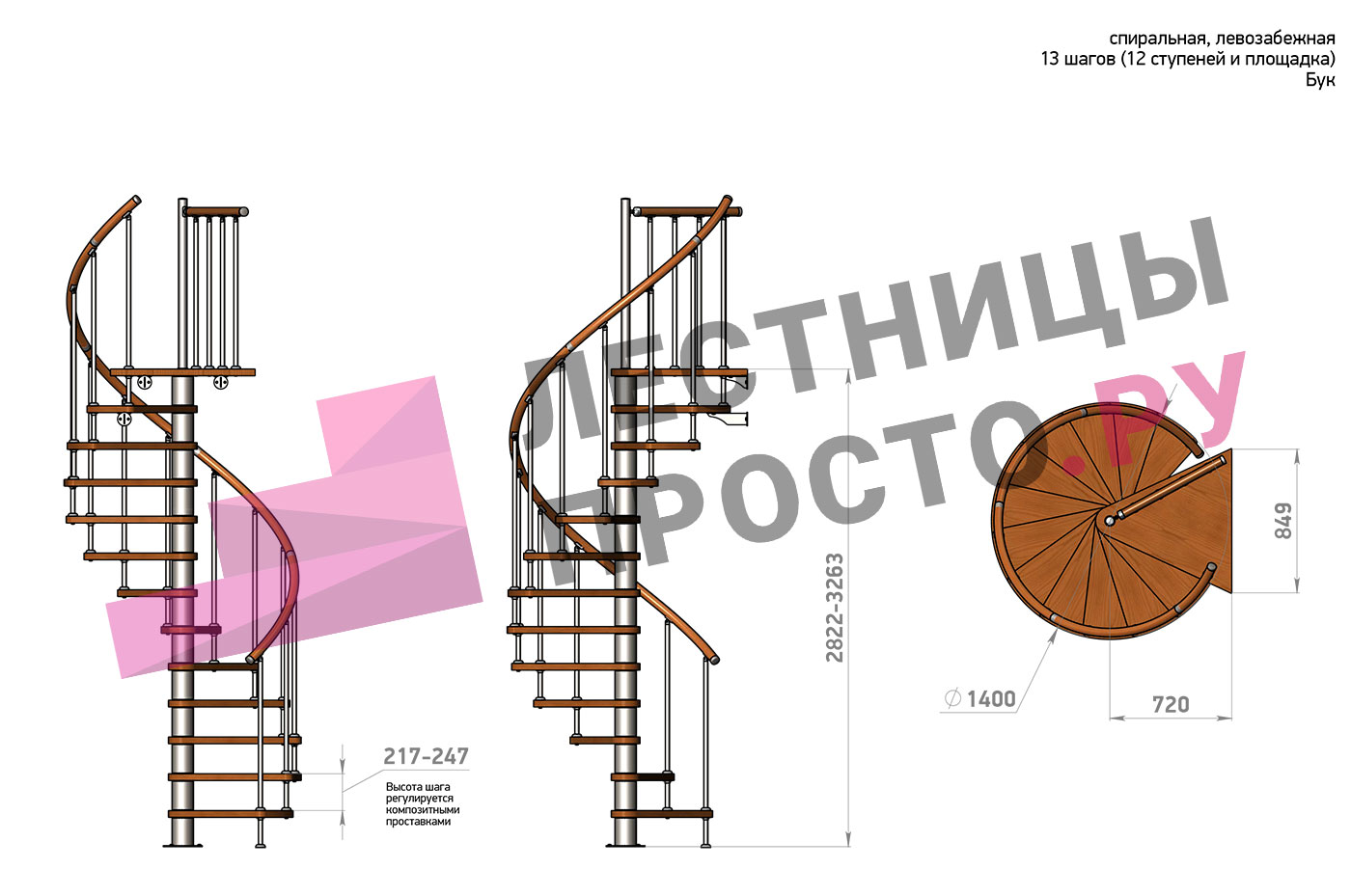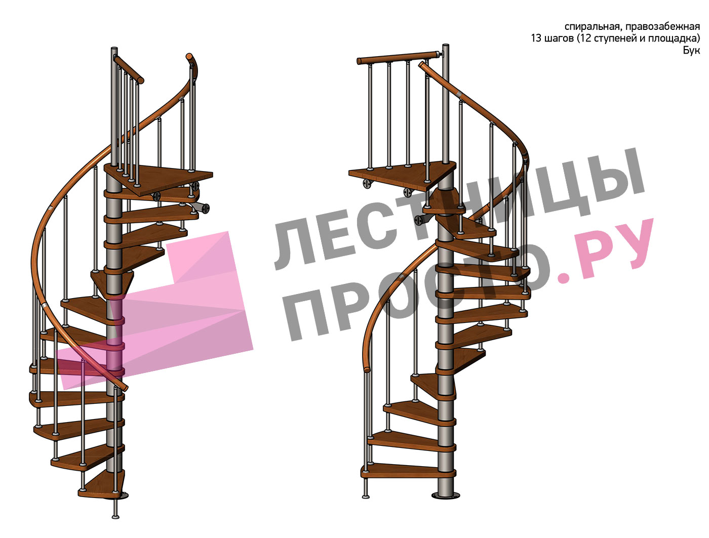 Винтовая лестница Prosto Spiral White D140см, h282.2-326,3 см, бук